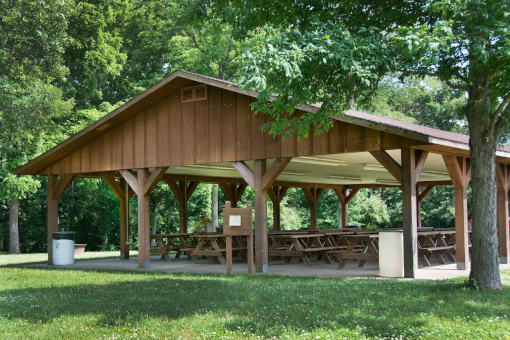 The park’s address is 1900 S. County Rd. 275 W., New Castle. After entering the park, go straight, toward the boat launch. The Big Oaks Picnic Area will be on your left, on the far side of the large parking lot.