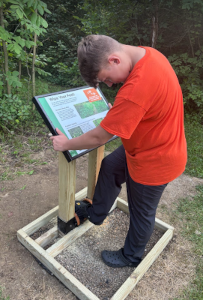 For his Eagle Scout Project, as a member of Scouts BSA Troop 149, Chayson created three boot scrape stations with interpretive signs for the Limberlost Conservation Area, with the help of his troop, parents (Mary and Donald Brown), Regional Ecologist Ryan Smith, the Indiana DNR, and Friends of the Limberlost. The boot scrapes are designed to prevent the spread of invasive species’ seeds on trails at three Limberlost sites.